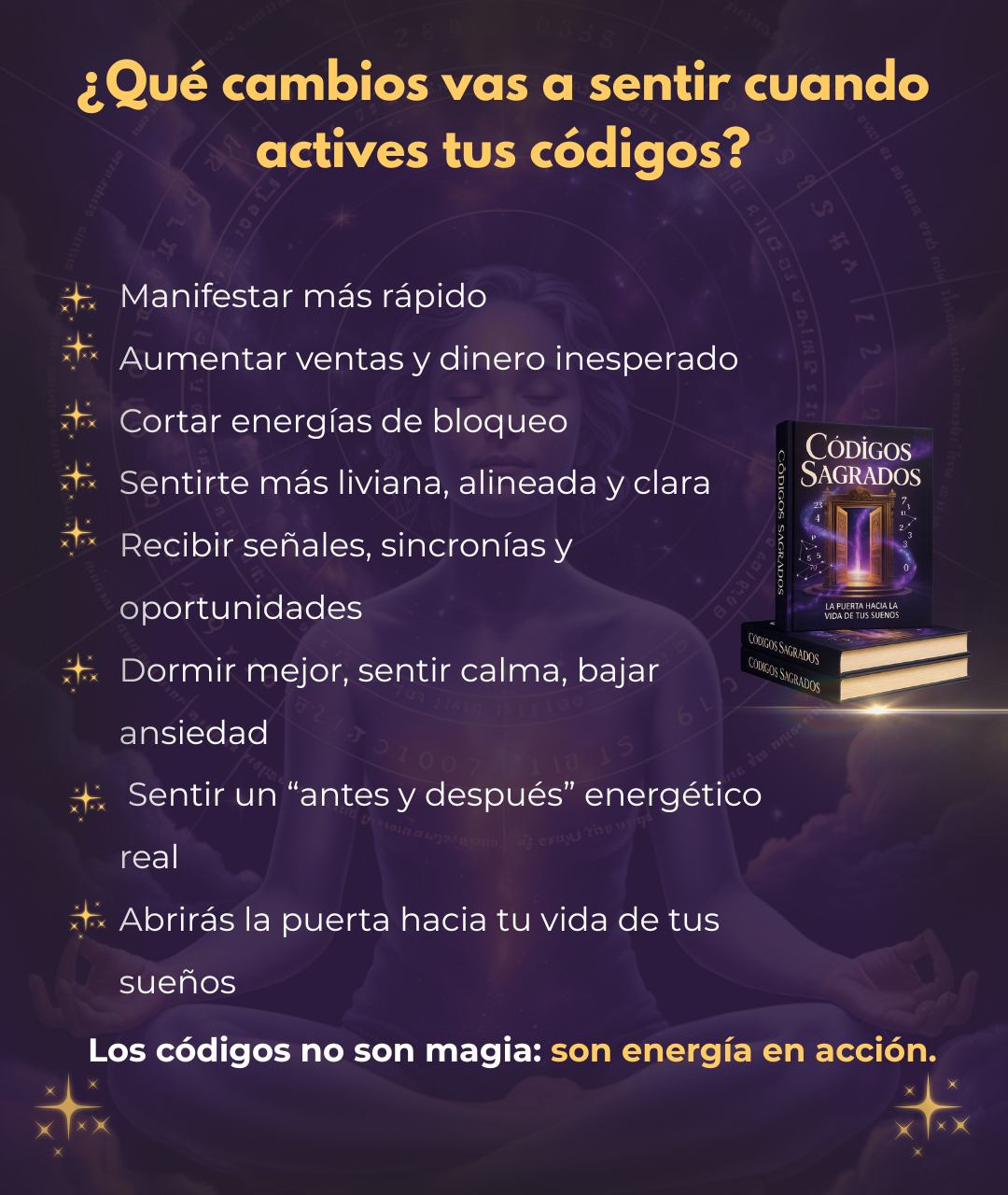 “Estaba bloqueada en todo… dinero, energía, emociones. El día que activé mi primer código sentí algo mover dentro mío. A las horas, me llegó una oportunidad que no esperaba. Ahora veo números, señales y sincronías todos los días. Siento que mi energía finalmente se abrió. ✨”