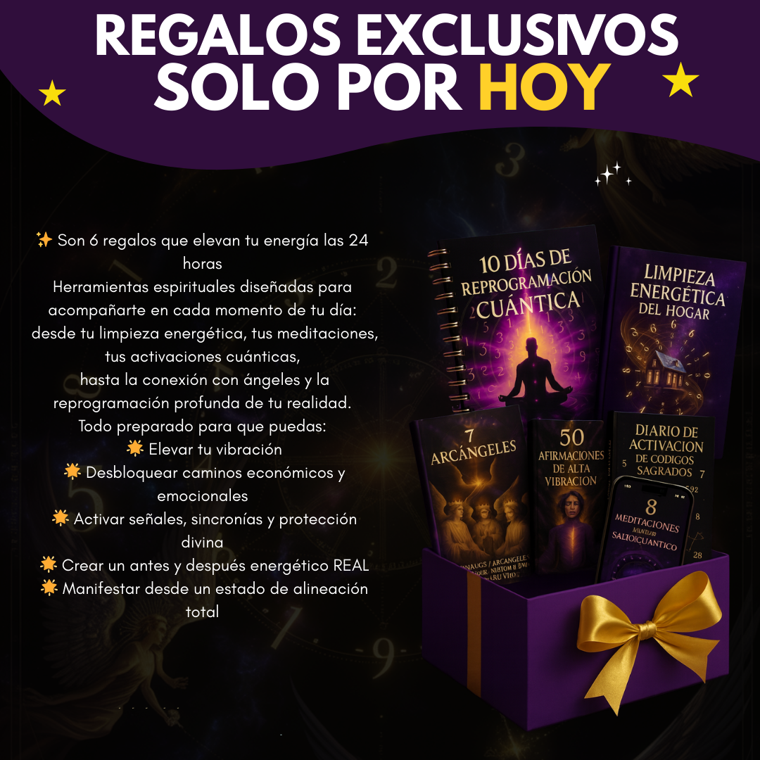 Un cuaderno sagrado con 50 decretos de poder que reprograman tu subconsciente para recibir abundancia, paz y claridad. Cada frase actúa como una llave energética que abre puertas internas. 💜 Ideal para usar al despertar o antes de dormir.